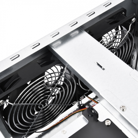 - В комплекті два довговічних (L10, 70000 годин) вентилятора 120 мм з подвійними підшипниками