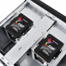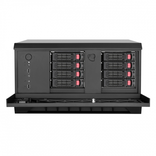 - Лотки з можливістю гарячої заміни підтримують до восьми 3,5 / 2,5 дюймових накопичувачів SAS-12G / SATA-6G, а також мають двобарвну LED-індикацію стану накопичувачів