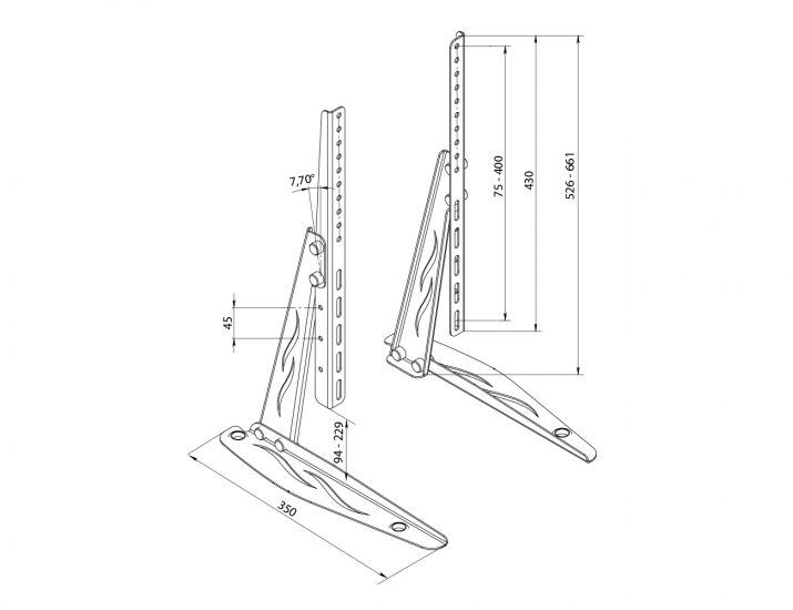 Настільний кронштейн підставка для телевізора SF-01 підходить для більшості моделей телевізорів діагоналлю від 40 до 86 дюймів і вагою до 40 кг. Як правило, ніжки для телевізора, що входять в комплект, розміщені дуже широко, що не зручно при розміщенні телевізора на тумбі. Якраз з цим вам допоможе настільна підставка SF-01.