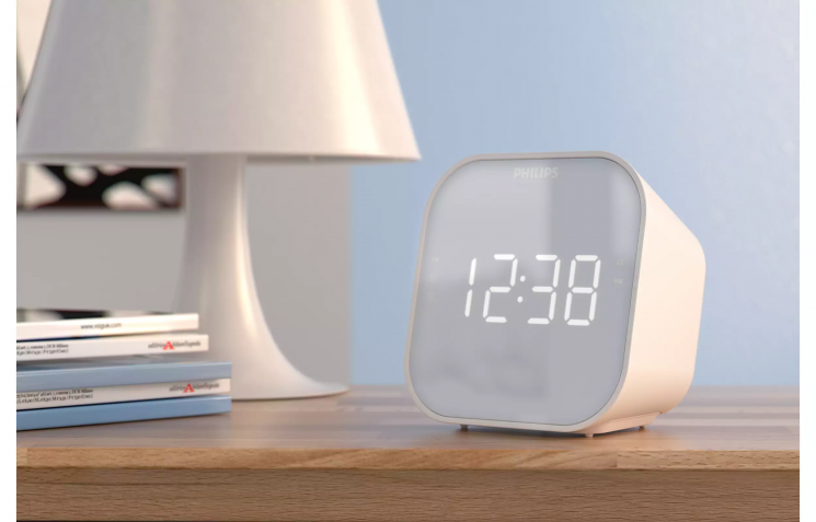 Миттєво дізнавайтеся час завдяки цьому радіогодиннику FM із будильником. Великі цифри дозволяють легко побачити дисплей із дзеркальним покриттям з будь-якого кута, і ви можете налаштувати яскравість відповідно до кімнати. Прості елементи керування дозволяють налаштувати будильник, гучність і радіостанції.