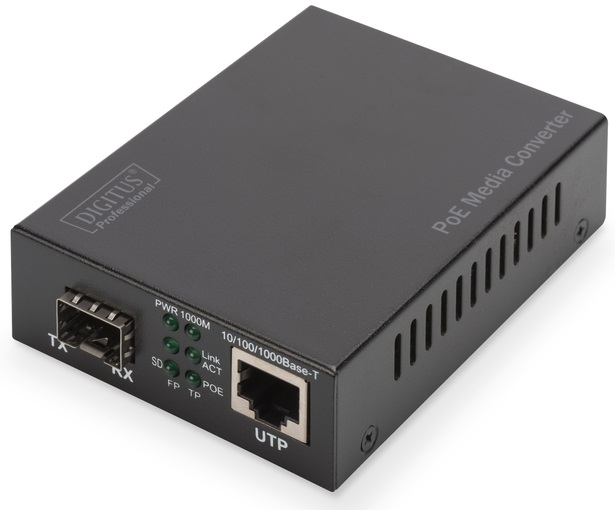 Медіа конвертор DIGITUS Gigabit PoE+, RJ45/SFP, 802.3at, 30W, incl. PSU