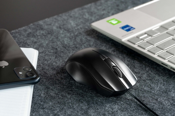 Дротова мишка виконана в класичному чорному дизайні що має плавнні лінії та обтікаєму форму. Мишка завжди готова до роботи – просто підключіть 1,5м. кабель до USB порту комп’ютера та працюйте. А ребристе коліщатко прокручування допоможе зробити скролінг більш чітким та контрольованим.