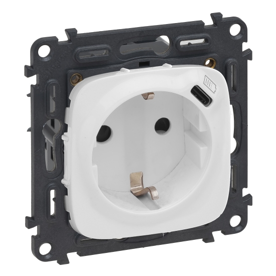 Розетка комбінована з колекції Valena Allure (Legrand) призначена для підключення електричних приладів потужністю до 16А, а також для підключення мобільних пристроїв з метою зарядки через інтегрований роз'єм USB Type C.