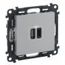 Розетка USB-A+USB-С Legrand Valena LIFE, 3А, 5V, алюміній