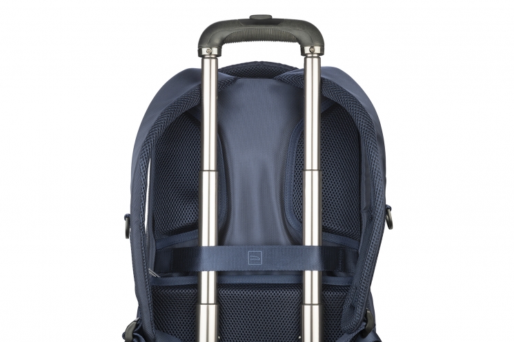 Так само в спинці вбудований ремінь-фікстатор для розміщення рюкзака на телескопічною ручці чемодана, і потайну кишеню (антизлодій).