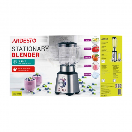 Важлива ознака Ardesto SBG-1510B – безпечність у користуванні та зручність, адже не потрібно нічого тримати в руках, достатньо просто встановити необхідну швидкість і дочекатися результату. Блендер Ardesto SBG-1510B комплектується спеціальним шпателем, за допомогою якого користувач може перемішувати інгредієнти навіть не знімаючи кришку чаши. До того ж із чаші блендера зручно переливати вже подрібнені страви та напої. Навіть якщо прилад працюватиме протягом тривалого часу, з ним нічого не станеться завдяки захисту від перегрівання.