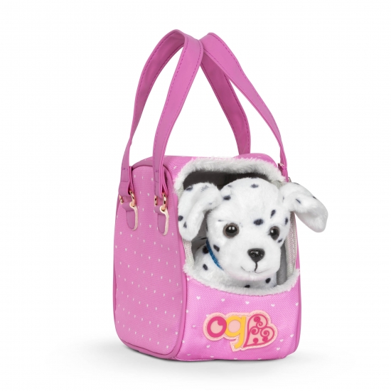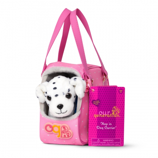 Візьміть свого власного домашнього улюбленця-далматинця і подорожуйте разом із сумкою для собак Our Generation! Цей набір дарує вашим 46-см лялькам радість від гри та захоплення з цуценям, тримати їх поруч у кожній пригоді! Внутрішня частина сумки має підкладку зі штучного хутра, щоб вашому цуценяті були зручно, а ремінці полегшують перенесення в будь-якій поїздці. Як тільки ви приїдете, прикріпіть повідець до нашийника для собак і насолоджуйтесь веселими прогулянками по околицях. Повідець зручно облягає руку вашої 46-см ляльки! Пограйте в гру за іграшковим м'ячем і роздайте ласощі. Потім помістіть улюбленця в середину сумки і вирушайте до наступного пункту призначення! Комплектація: сумка для тварин, плюшевий собака з нашийником, повідець, миска з водою та їжею, іграшковий м’ячик, ласощі для собак (3 шт), собача зубна щітка Рекомендовано для дітей від 3 років