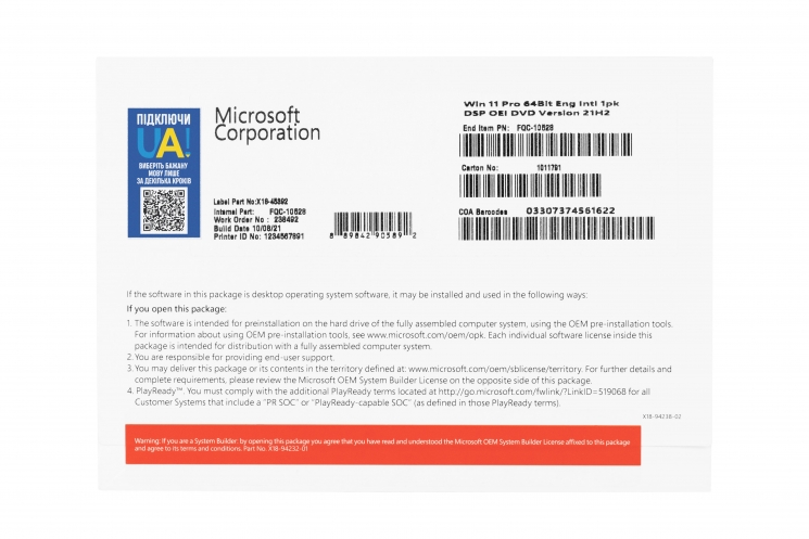 | Тип | ОЕМ версія (для збирачів) |