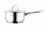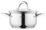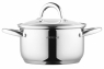 Набір посуду з нержавіючої сталі для приготування їжі. У наборі: сотейник 1,6 л, каструлі об’ємом 1,6 л, 2,3 л, 3,2 л, 5,5 л та скляні кришки до них. Товщина стінок посуду – 0,4 мм, дна – 2,4 мм. Посуд сумісний із газовими, електричними, склокерамічними, галогенними та індукційними плитами. Можна мити в посудомийній машині.