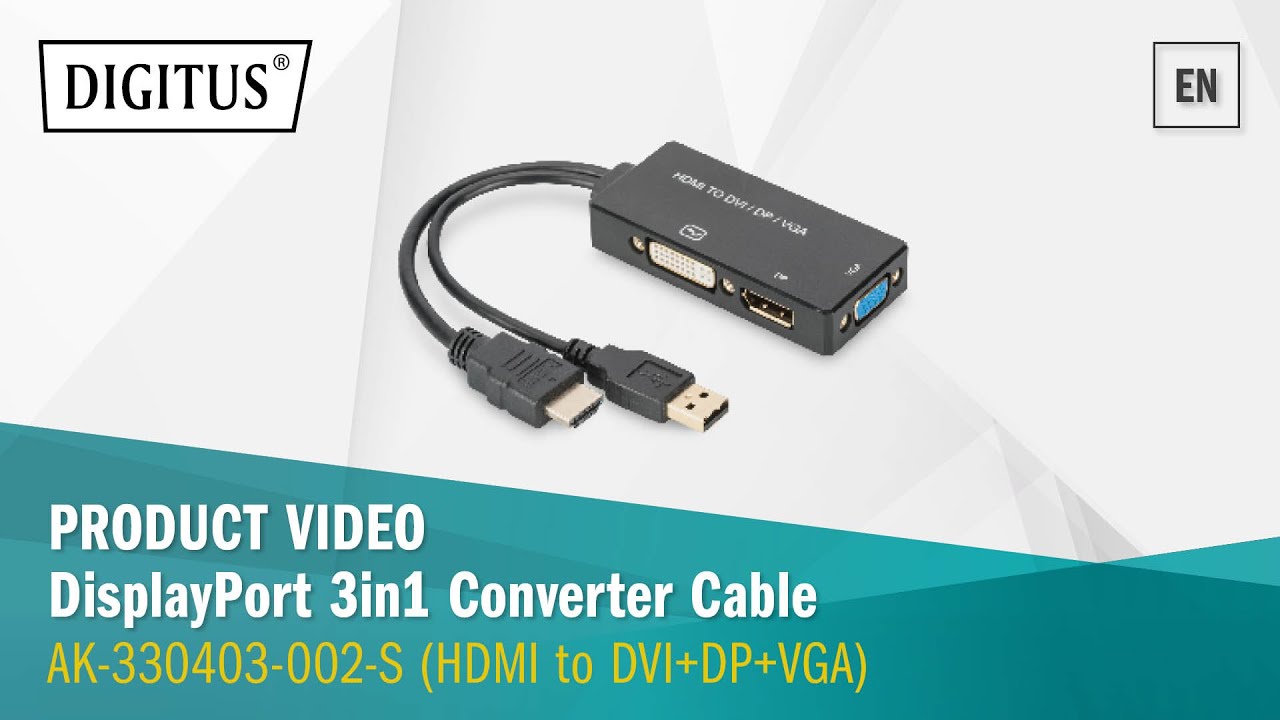 Технічні характеристики Перехідник DIGITUS HDMI - DP+DVI+VGA UHD 4K, M-F/F/F, 3 in 1: