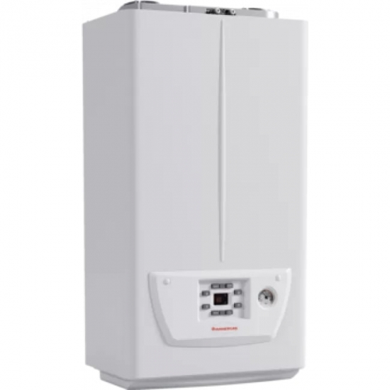 - Два контури обігріву. Котел має два роздільних теплообмінника (первинний з міді, вторинний з нержавіючої сталі) для забезпечення опалення та гарячого водопостачання.