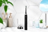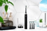 Електрична зубна щітка із середньою жорсткістю щетини забезпечує ефективне та безпечне чищення зубів із дбайливим ставленням до ясен і ротової порожнини. Ергономічна форма ручки робить процедуру зручною та приємною. Сучасна звукова технологія чищення із частотою пульсації – 40 000 рухів на хвилину. Є чотири режими для різних потреб зі світлодіодною індикацією вибраного режиму на корпусі: стандартне чищення, для чутливих зубів, відбілювання, масаж ясен. У комплекті є чотири додаткові класичні насадки і дорожній футляр із відділенням для двох насадок.