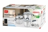 Посуд з набору серії Gemini виготовлено з нержавіючої сталі, а ручки отримали силіконове покриття. Посуд поставляється з термостійкими скляними кришками з отвором для пари та сумісний з усіма видами плит, включаючи індукційну. Для зручного зливу води передбачені спеціальні отвори. Для очищення посуду можна використовувати посудомийну машину.