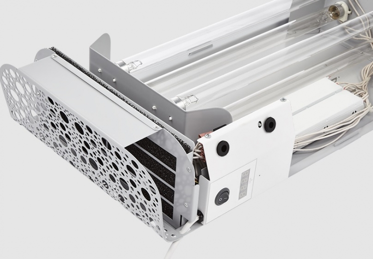 • Унікальна контрукція корпусу - прилад легко розбирається для очищення повітряного фільтра та заміни ламп.