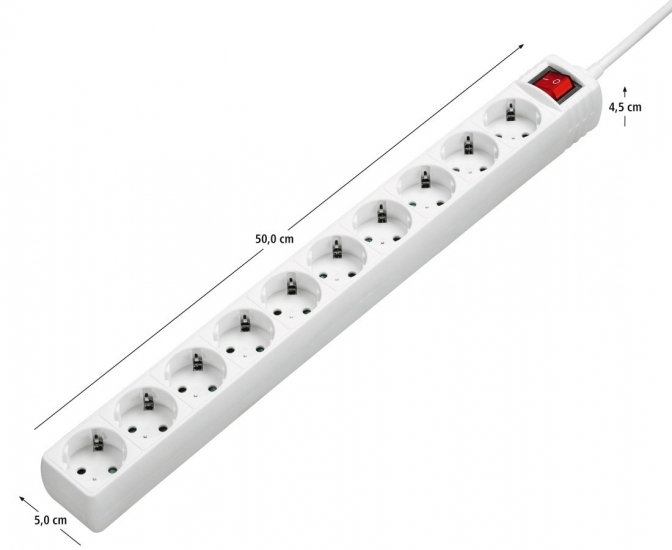 Мережевий подовжувач Hama, з 10 розетками. З його допомогою можна підключати не тільки електроприлади, а й заряджати до 10 мобільних пристроїв: смартфони, планшети, зовнішні батареї та багато інших пристроїв. Мережевий подовжувач Hama відповідає стандартам GS в Німеччині.