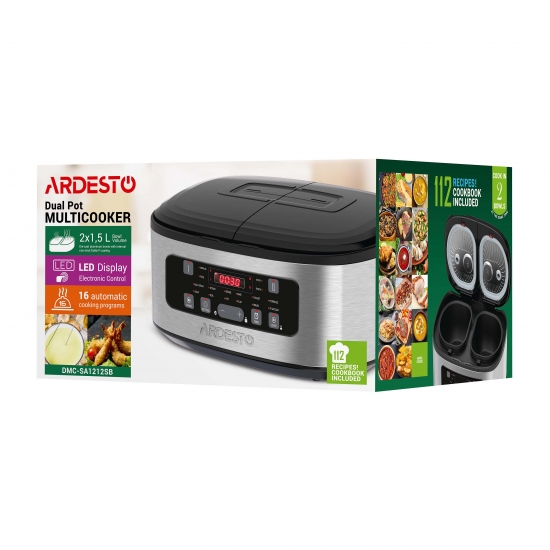Мультиварка з двома чашами ARDESTO DMC-SA1212SB – це маленький шеф-кухар, якому можна доручити приготувати практично будь-яку страву, з-поміж яких супи, каші, випічка, йогурти тощо.