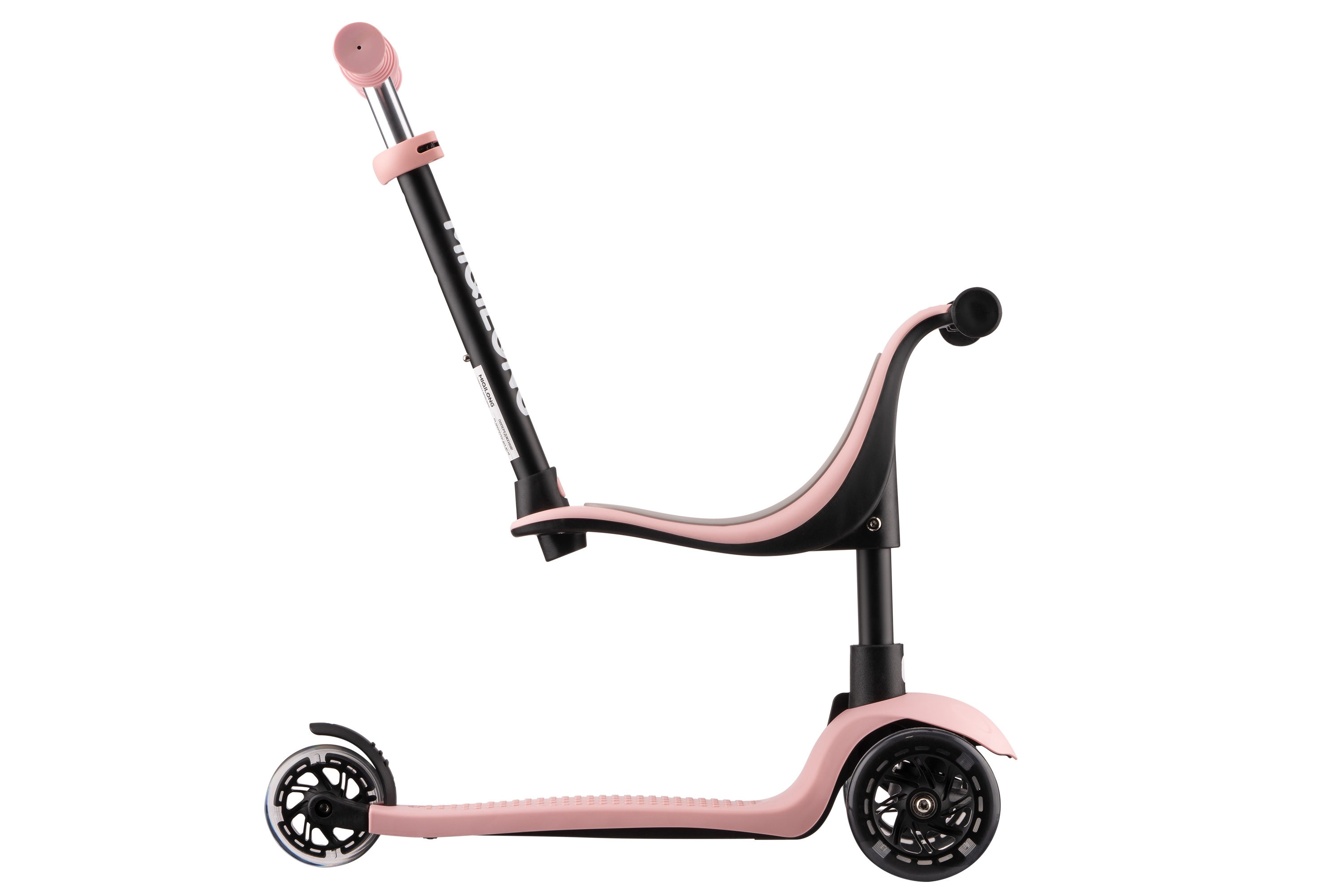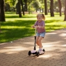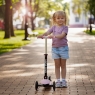 У варіанті 3-колісного самокату дитина розміщується стоячи на деці і керує самокатом самостійно.