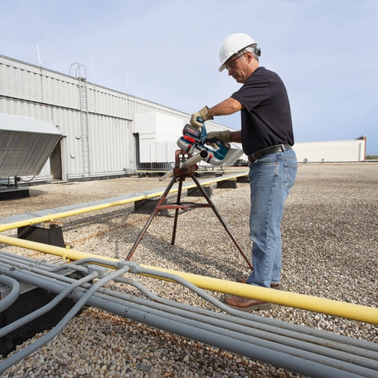 Акумуляторна стрічкова пилка GCB 18V-63 - найергономічніша і найкомпактніша акумуляторна стрічкова пилка від Bosch. Легкість інструменту забезпечує комфортну роботу навіть у обмеженому просторі. Швидка заміна пильних полотен здійснюється завдяки пристрою для зняття натягу леза та стандартному захисному пристрою з металевими затискачами. З цією стрічковою пилкою комфортно працювати: від безшумного ходу пиляльного полотна для зручного звернення до освітлення робочої зони світлодіодним підсвічуванням.