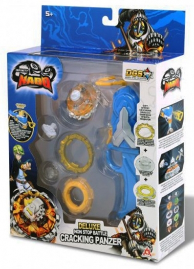 Дзиґи Infinity Nado V - нове покоління дзиґ Infinity Nado. Новий дизайн для нових бойових стратегій! Кожна дзиґа оснащена двома бойовими кільцями: металевим кільцем атаки - яке надає їй стабільності і сили, і кільцем захисту - щоб захиститися від атак противників. Ексклюзивні дзиґи Battle Non-Stop - це двокінцеві дзиґи, ви зможете запускати їх на арену з обох боків, щоб обрати атакуючий або захисний режим ведення бою.