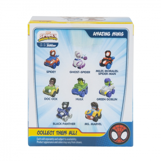 Машинка-сюрприз! Їздіть містом у перервах між захоплюючими пригодами в міні-автомобілях улюблених героїв або лиходіїв з мульт-серіалу Спайді. В асортименті такі герої як: Спайді, Майлз Моралес, Примарний павук, Зелений гоблін, Міс Марвел, Чорна Пантера, Док Ок та Халк. В асортименті 8 видів машинок. Збери їх усіх!