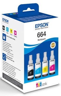 Фото Контейнери з чорнилом Epson T664 EcoTank L110/L120/L121/L1300/L1455/L210/L300/L3050/L3060/L3070/L355/L382/L386/L486/L550/L605/L655/L364/L132/L222/L312/L366/L456/L566 Multipack (C,M,Y,Bk)