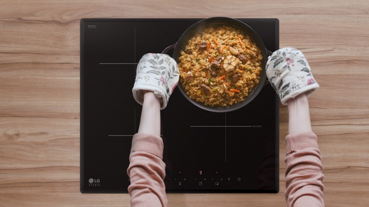 Під час приготування на панелі відображається індикатор залишкового тепла, який повідомляє, що температура поверхні небезпечна для торкання. Після вимкнення панелі знак відображається, доки вона не охолоне і її можна буде безпечно торкатися.