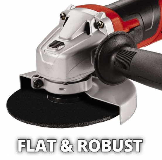 Кутова шліфувальна машина компактна та легка ручна мережева мала болгарка з діаметром пильного/шліфувального круга 125 мм та електродвигуном підвищеної потужності 850 Вт. У болгарки є зручна рукоятка з гумовими накладками для кращого зчеплення з долонею, крім того, надійний хват гарантується другою додатковою бічною рукояткою. Безпека кутової шліфувальної машини забезпечує захисний кожух, що закриває диск, що обертається, і фіксація шпинделя під час заміни оснастки. Надійність та тривалий термін експлуатації досягається за рахунок міцного металевого корпусу редуктора.