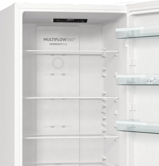 Одна з кращих систем охолодження на ринку, встановлена в морозильному відділенні, запобігає утворенню інею та льоду в морозильному відділенні та знижує рівень споживання енергії. В результаті вам не потрібно розморожувати морозильне відділення і його простір можна використовувати більш ефективно. Упаковки продуктів не примерзают один до одного, зберігаючи порядок у морозильнику.