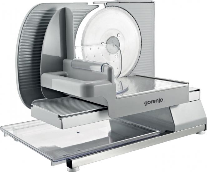 Слайсер для харчових продуктів Gorenje гарантує винятковий рівень захисту під час використання. Його легко розбирати та збирати для обслуговування. Корпус приладу виготовлено з алюмінію, а ножі — з високоякісної нержавіючої сталі. Площина для нарізання має невеличкий нахил для полегшення руху продуктів, що нарізаються.