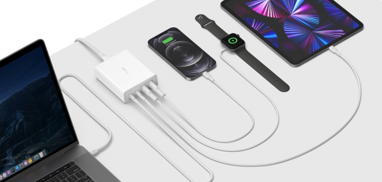 Заряджайте MacBook на повній потужності за допомогою 4-портового зарядного пристрою Belkin USB-C GaN 108 Вт. Завдяки 2 портам USB-C та 2 портам USB-A ви можете легко та зручно заряджати свій ноутбук, iPad, iPhone та Apple Watch. Також підтримує широкий спектр ноутбуків та пристроїв Samsung, Microsoft, Lenovo, та інших сумісних пристроїв USB-C. Завдяки технології GaN забезпечується більш висока потужність та ефективність заряджання пристроїв. Його незвичайний дизайн забезпечує зручність та комфорт, оскільки він має доступ до кількох зарядних портів прямо на вашому столі.