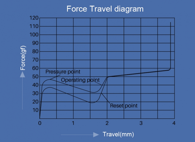 Ocean blue – перемикач із високим тактильним положенням. Користувачі починають відчувати тактильний виступ на 0,5 мм із постійним зворотним зв'язком до 1,8 мм. Завдяки чому він відрізняється від звичайних коричнево-синіх перемикачів із середнім тактильним положенням.