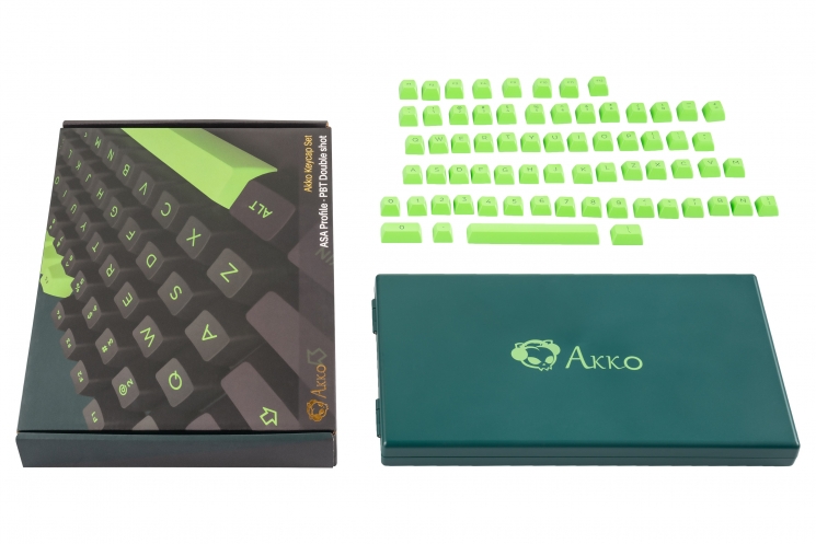 Набір ковпачків Akko у профілю ASA призначений для різних розкладок механічної клавіатури з колірними схемами світло-зеленого та темно-зеленого відтінків. Клавішні ковпачки виготовлено з застосуванням подвійного процесу PBT. Вони стійкі до тертя, вицвітання та виблискують чіткими написами.