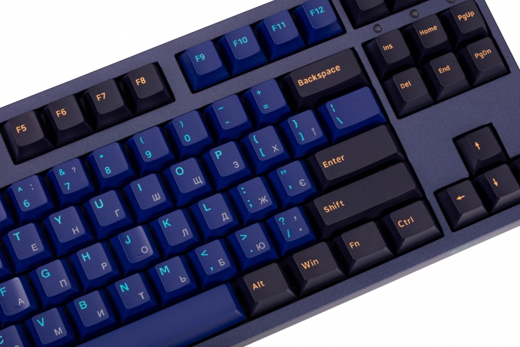 Подвійні ковпачки клавіш PBT DOUBLE-SHOT надзвичайно міцні та стійкі до зношування навіть протягом десятиліть, а написи особливо яскраві, чіткі та контрастні.