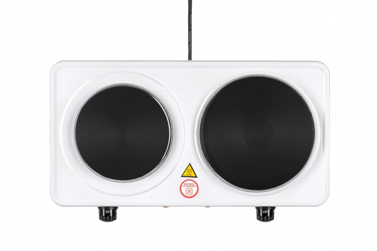 Електрична плита ECS-J225W білого кольору з двома конфорками діаметром 15,5 і 18,5 см й індикатором нагріву. Потужність однієї конфорки – 1 000 Вт, іншої – 1 500 Вт. Чудово підійде для приготування різноманітних страв вдома, на дачі, в гуртожитку, в умовах кемпінгу тощо. Є захист від перепадів напруги в електромережі й регулятор температури має п’ять положень нагріву. Загальна потужність становить 2 500 Вт, напруга – 220 – 240 В. Корпус виготовлено із емальованої сталі. Легка в налаштуванні, користуванні й догляді.