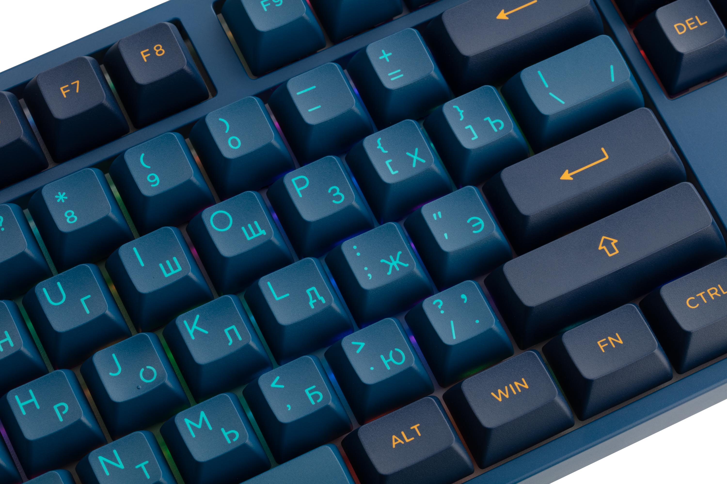 Подвійні ковпачки клавіш PBT DOUBLE-SHOT надзвичайно міцні та стійкі до зношування навіть протягом десятиліть, а написи особливо яскраві, чіткі та контрастні.