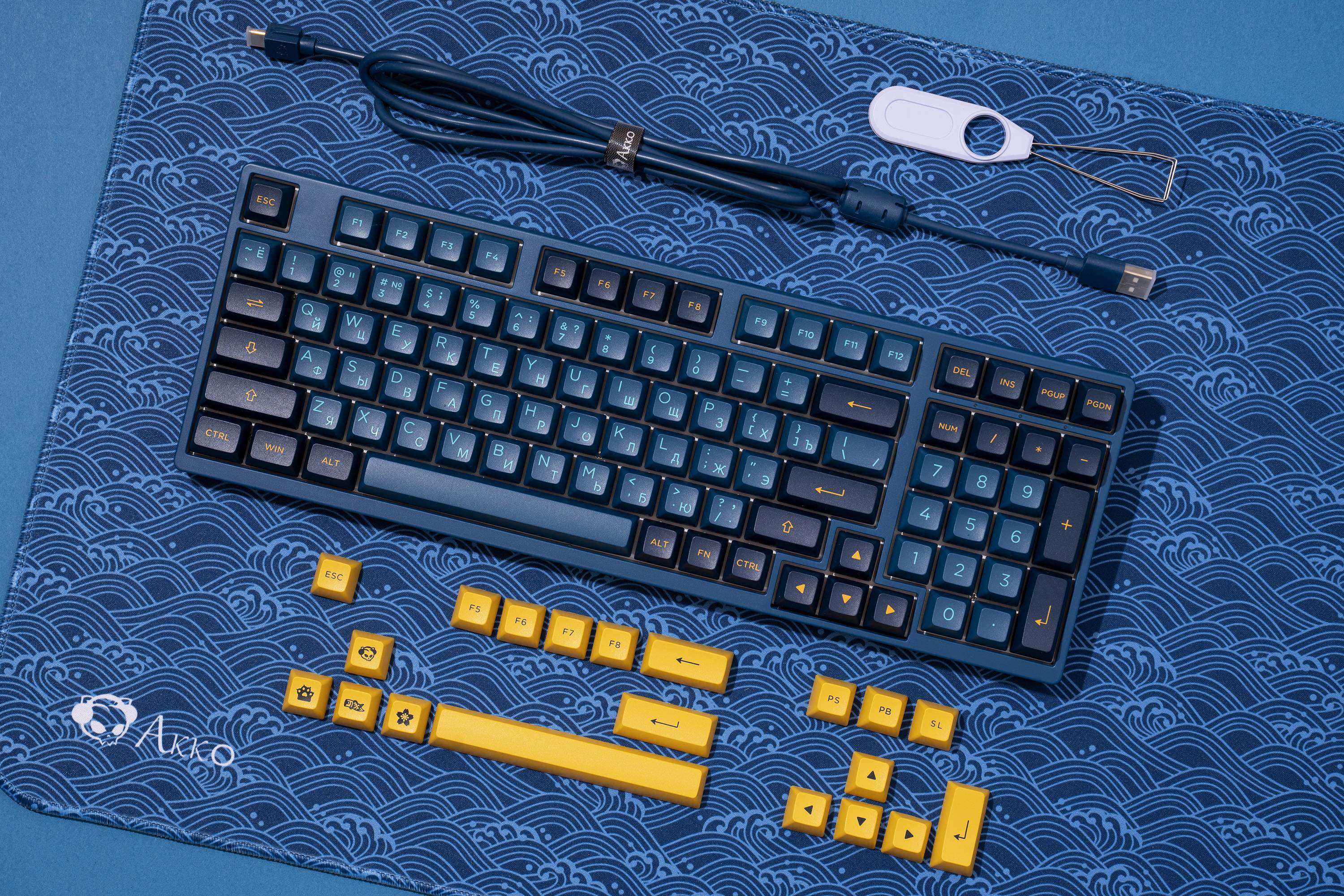Ігрові клавіатури Akko мають окремий кабель Type-C для широкої сумісності та зручності використання. Двоступінчасті ніжки можна регулювати за висотою (три рівні). PBT-пластик забезпечує тривалий термін служби ігрової техніки без вицвітання.