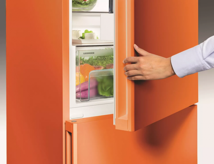 Захисне покриття оранжевого кольору полегшує догляд та зберігає бездоганний вигляд корпусу холодильника з нержавіючої сталі.