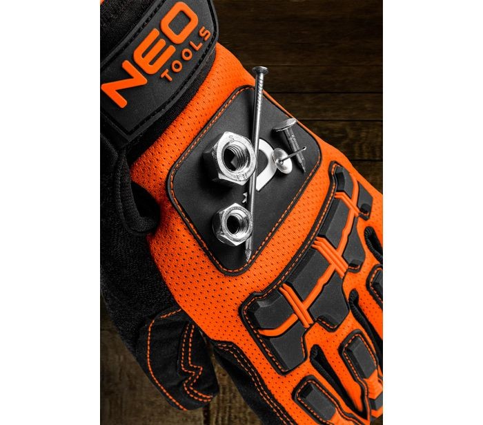Перфоровані нітрилові рукавички, помаранчеві, 50 штук, розмір L, 97-690-L від NEO - це рукавички, виготовлені з міцнішого матеріалу, ніж звичайний нітрил, що надає їм більшої стійкості до проколів або розривів у суворих умовах. Текстурована алмазна поверхня відводить рідини і забезпечує найкраще захоплення. Рукавички знижують навантаження на руку та підвищують безпеку користувача. Вони містять порошку, що рекомендується для алергіків. Ця модель також відрізняється двосторонністю, тому рукавички ідеально сидять на обох руках, що робить їх більш швидким та легким вдяганням.