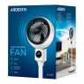 Потужність вентилятора становить 50 Вт. Функція обертання забезпечує рівномірний розподіл повітряних потоків у приміщенні. Діаметр лопатей – 20 см, а для безпеки застосовано посилену конструкцію захисної решітки. Кут нахилу вентилятора можна регулювати в межах 90º, а також горизонтально – на 70º.