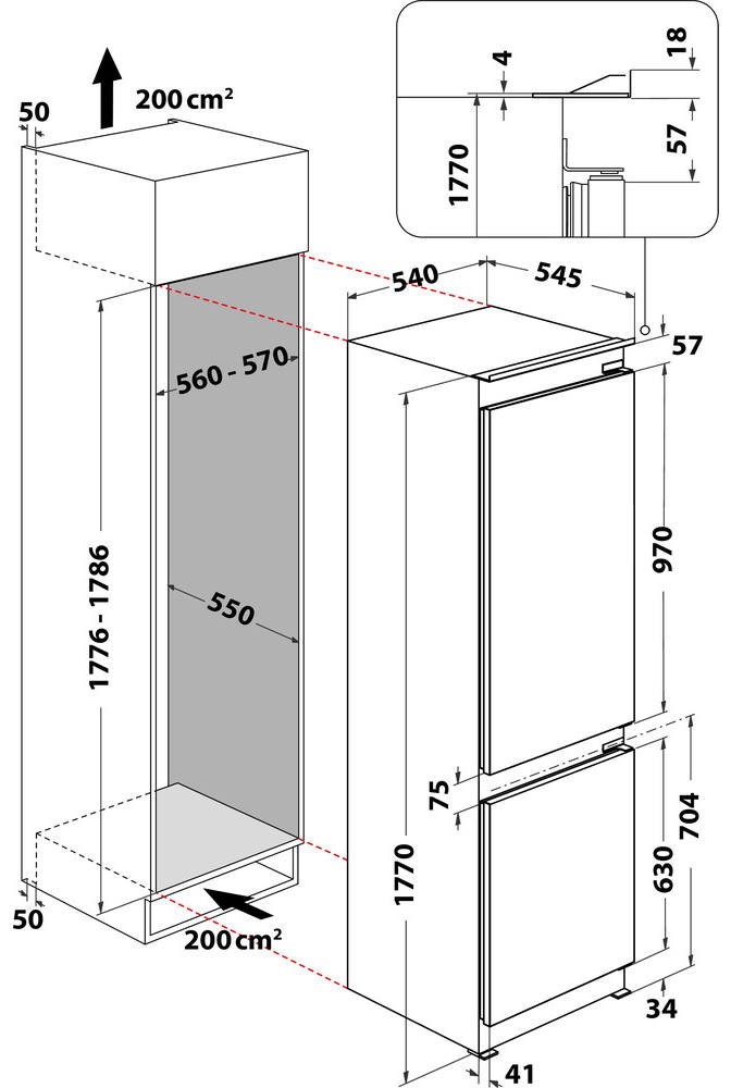 Опис Холодильник Whirlpool вбуд. з нижн. мороз., 177x54х54, холод.відд.-182л, мороз.відд.-68л, 2дв., А+, NF, зона нульова, білий