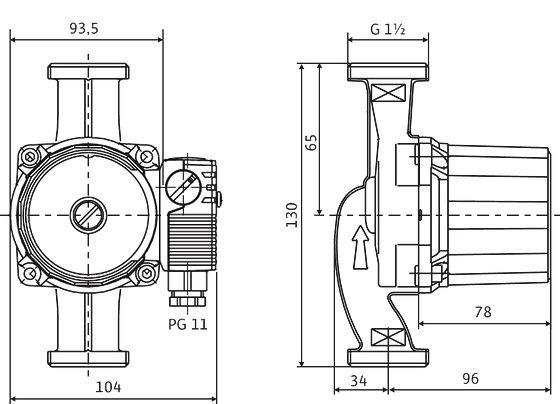 Циркуляційний насос з мокрим ротором для монтажу на трубопроводі з ручним 3-ступеневим перемиканням числа обертів. Зі стійким до струмів блокування двигуном. Корпус насоса із сірого чавуну (ливарна бронза в залежності від типу), робоче колесо зі склопластика, вал з високоякісної сталі з підшипниками ковзання з металонасиченого графіту. Застосування в системах холодної води до -10°C серійно. Експлуатаційна безпека завдяки просвердленому валу та блоку фільтрів перед втулкою.