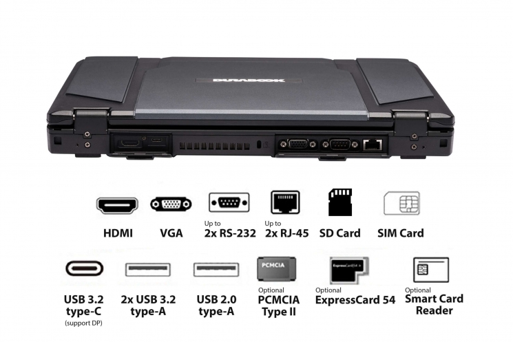 Інтелектуальний пристрій S14I підтримує різні способи обміну даними. Пристрій сумісний із повним набором інтерфейсів, а медіа-відсік дасть змогу встановити всі необхідні модулі розширення. Пристрій займає лідируючі позиції на ринку завдяки двом цифровим і одному аналоговому відеовиходу; HDMI + VGA + USB Type-C DP, пристрою читання смарт-карток/CAC, підтримці додаткових карт PCMCIA або Express Card і пристрою читання RFID-міток. Додаткові можливості кастомізації: до двох послідовних портів RS-232, до двох портів LAN RJ-45 і додатковий роз'єм Fischer.