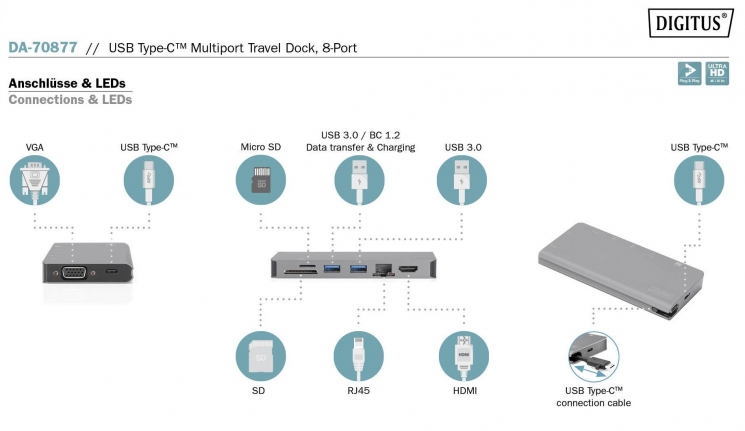 Опис Док-станція DIGITUS Travel USB-C, 8 Port