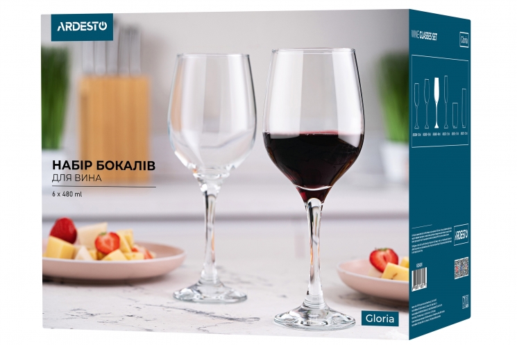 Набір келихів для вина Ardesto Gloria 480мл 6 предметів (AR2648GW)