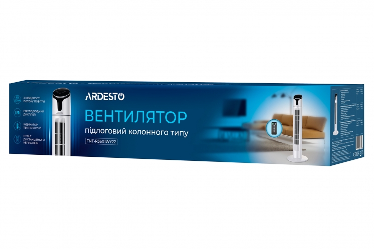 Ardesto FNT-R36X1WY22 виконано у сучасному дизайні, який впишеться у будь-який інтер’єр, а конструкція колонного типу дозволить розташувати вентилятор навіть у самих маленьких приміщеннях. Для стійкої установки використовується кругла платформа.