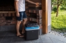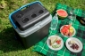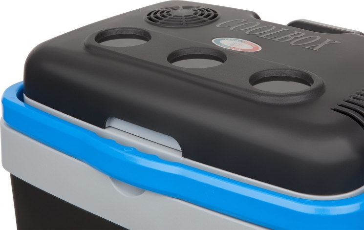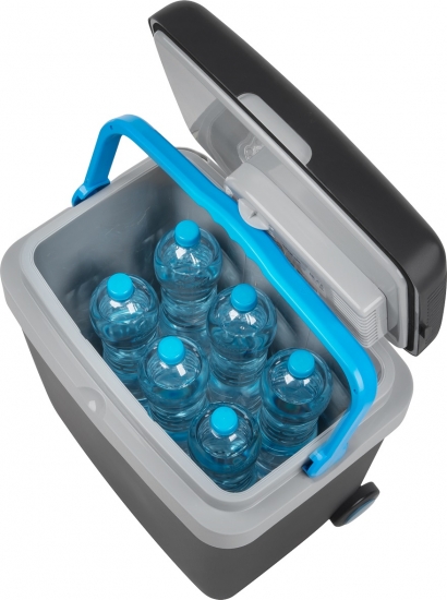 Холодильник дорожній. Сучасний дизайн із 33-літровим об'ємом. Потужна висувна ручка та великі колеса для легкого катання. Режим охолодження та нагріву. Зелений/червоний світлодіод вказує на охолодження або нагрівання. Для використання в автомобілі та будинку (подвійне джерело живлення 12/230 В).