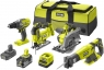Опис Набір із чотирьох акумуляторних інструментів Ryobi RCK184C-242S, ONE+ 18В, дриль-шурупокрут R18DD3, лобзик R18JS, циркулярна пила R18CSP, шабельна пила RRS18, АКБ 2+4А•год, сумка