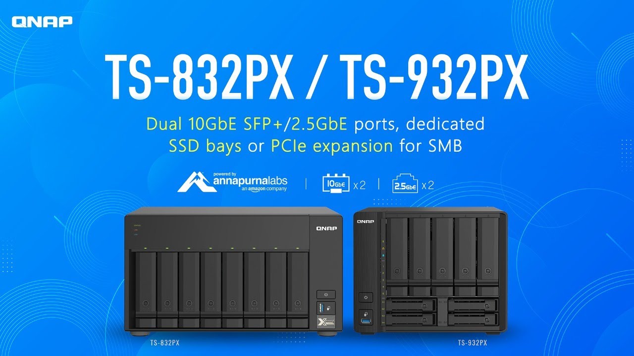 TS-832PX оснащений двома мережними портами 2,5 Гбіт/c RJ45, до яких підключаються існуючі кабелі CAT5e, швидкість мережі підвищується з 1 Гбіт/с до 2,5 Гбіт/с. Порти також підтримують транкінг підвищення швидкості передачі даних до 5 Гбіт/с. За допомогою адаптера QNAP N-BASET / Multi-Gig USB 3.2 Gen 1 - 5GbE (назва моделі QNA-UC5G1T) або карт розширення PCIe 5 GbE (назва моделі QXG-5G1T-111C) можна підключити ноутбук або настільний комп'ютер до мереж 2,5 Гбіт/c разом із TS-832PX. Також накопичувач TS-832PX оснащений вбудованим портами Gigabit Ethernet і двома високошвидкісними мережевими інтерфейсами на 10 Гбіт/с SFP+. Модель TS-832PX, що підтримує стандарт 10GbE, забезпечує виключно високу пропускну здатність. У поєднанні з підтримкою високої ємності сховища накопичувач TS-832PX ідеально підходить для центрів обробки даних завдяки вмінню працювати з великими об'ємами даних та забезпечувати високу швидкість передачі даних, а також для редагування відеофайлів великого розміру "на льоту", не пересилаючи їх туди і назад. накопичувачем TS-832PX та настільними комп'ютерами.