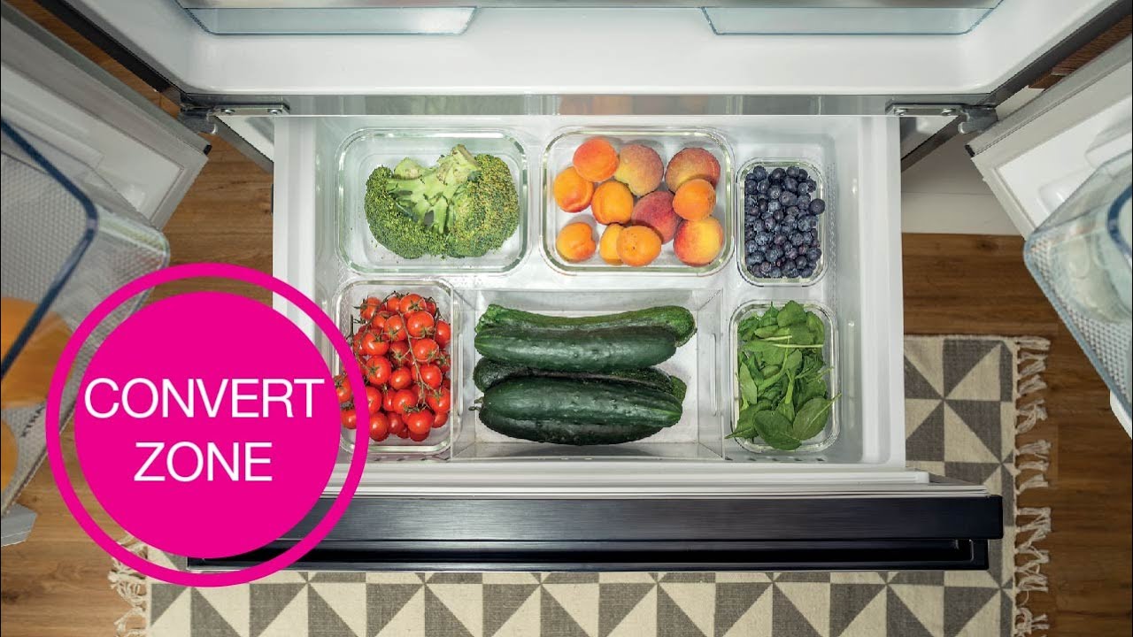 Просторий ящик CrispZone призначений для збереження поживних речовин та продовження свіжості вашої їжі завдяки низькій температурі та можливості регулювання рівня вологості.