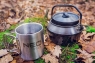Чайник для подорожей NEO, 63-147, ємністю 0,8 літра. Ідеально підходить для заварювання води для кави на природі або приготування чаю після довгої прогулянки в прохолодний день. Виготовлений з міцного та легкого анодованого алюмінію та нержавіючої сталі. Він має діаметр 152 мм та висоту 96 мм. Його вага лише 190 р.